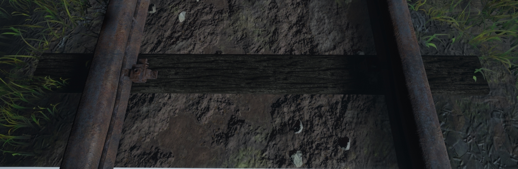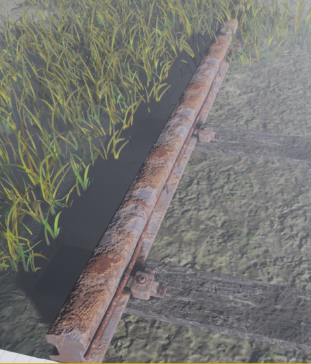 The good thing about having material blend is the ability to use textures already in the scene creating a more realistic vibe. The way I went about this was using the old wood texture from the first week blog post and changing the coloring around alongside a material blend which used a grunge blend as the mask creating a dirt wood. A very basic texture with a very powerful output. Shown below is the train track wood it was used on.