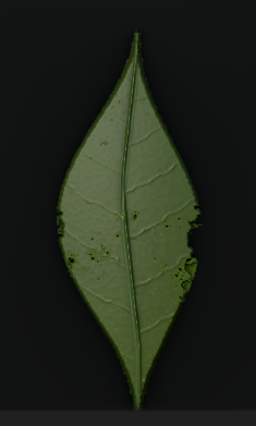 Although this is a long process you can see the difference in what I have made, going from a standard leaf shape to a oak leaf which was used in my scene. This again allows anyone to shape whatever they like and have it so that the shape immediately looks like a leaf with veins, a stem and anything else they wish to add like damage etc.