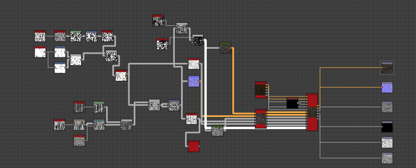 The concept for this blog post is going to be primarily all of my textures, how I break some down, explain them and how they are referenced. As shown before the texture for the tree was made that is quite a basic version of some of the graphs that I have created for this project, I will be primarily showcasing some of the workflows here rather than explaining every single node because that would take some serious time which I don't have on this project. There will be one or two which I will explain because of the amount of help they've given me but for most it will be a brief explanation and reference.