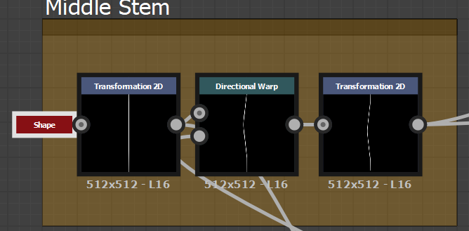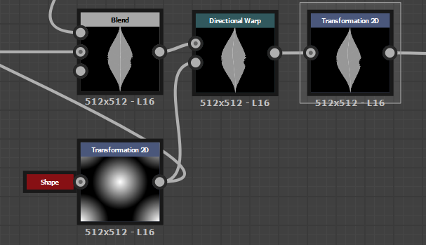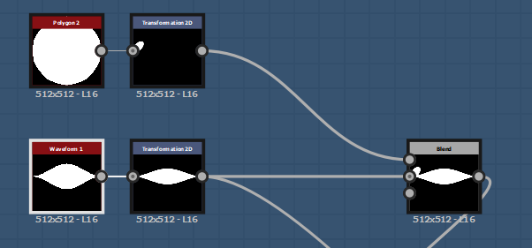 Start off I wanted to do the ones I wish to talk about first, this is my first ever leaf generator. You may have read previous that I have made a leaf in substance, this was good but I wanted to take it further and be able to make multiple leafs out of one graph. So what I thought about was shaping a leaf, the idea of a leaf shape was hard enough because in substance everything patterns itself. I then remembered how the transform 2D node allows you to turn of tiling as well as lets you size and shape anything you want, although this may not be the best way to do it I set it up like this. Using a waveform node and turning everything in the node options (aside samples) to 1 it gives you a generic leaf shape. I then thought why not do it like Photoshop and just pain over it a few times to create the basic shape you want, I then done this, both images below explain my process visually.