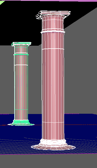 The layout is simple, color ID maps allow me to pick the object I want to texture in other programs and all of these overlap for this exact reason. Aside from this, the objects that stretch outside of the box will allow for the texture to be repeated onto itself, this meaning that it will save on the levels of detail needed and not needing to put it on its own texture sheet. I'll show off one objects in the scene below so you get the understanding of what I mean. This pillar is a good example as it is layered properly and has one piece outside the boundary box.