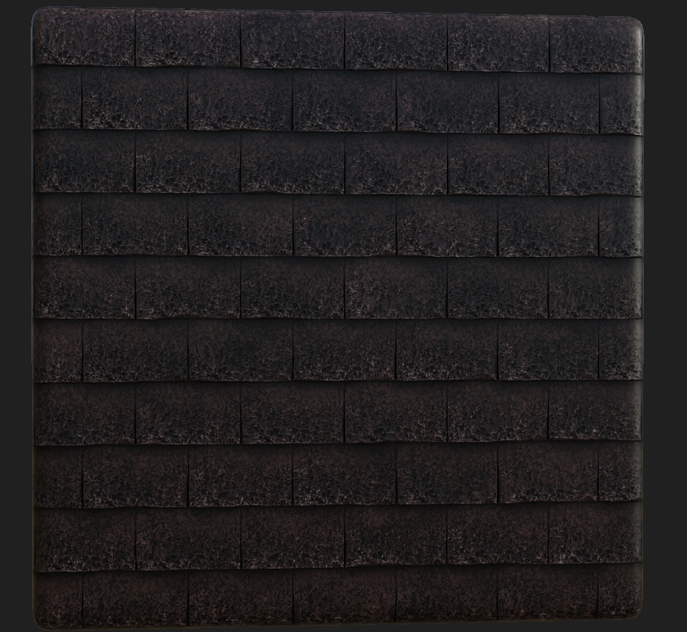 The reason for it being this way with the cracks as well as the dark obvious parts is because it will be a roof tile at around 1k or even 512 texture resolution as the player wont be able to go up to it closely and see. Saving on both GPU memory and processing memory this will let the engine run smoother than if it was higher especially with the amount of it being used. I made two variations of this but the first one will be primarily used and the second one on any low-bearing rooftops because less detail is needed on those as you probably wont be able to get high enough to see them.