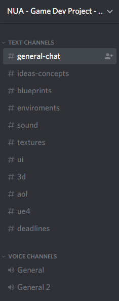 After getting all of these setup, we then went in and defined who needed to work where and how the layout should be. Shown below are examples of this including our text channels and file management.