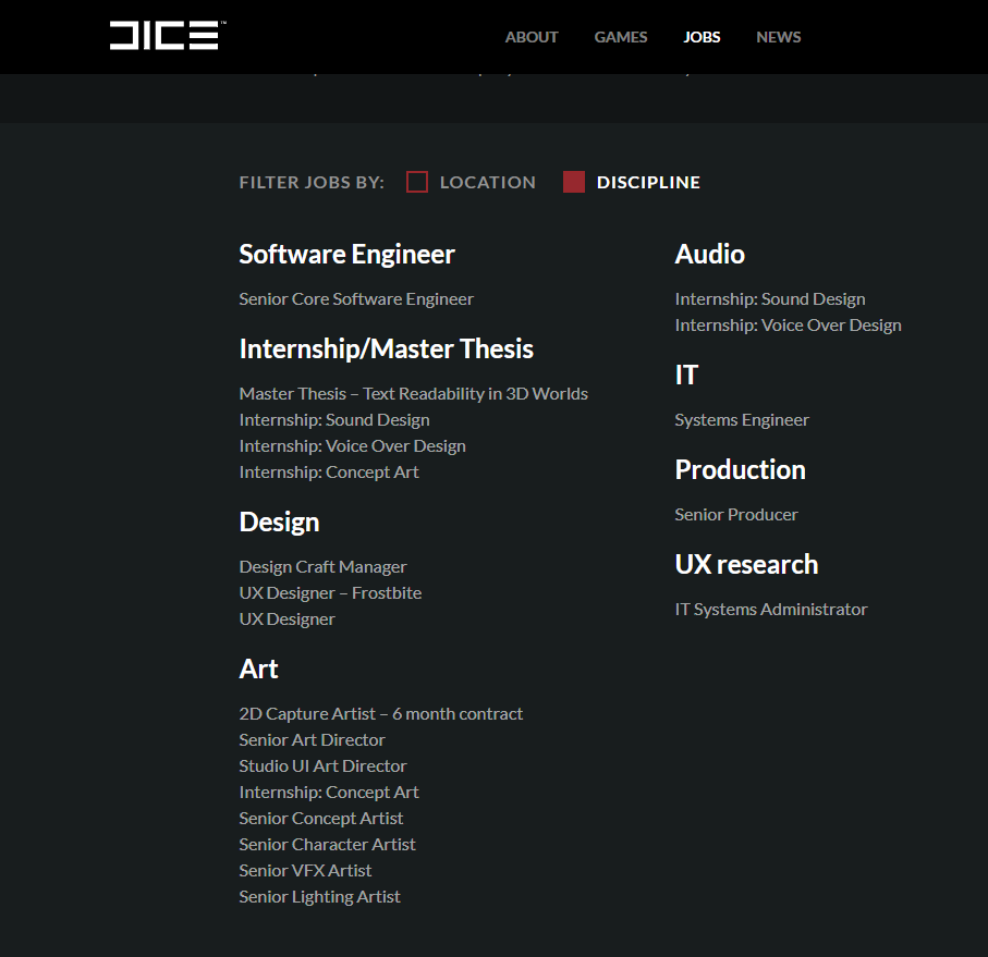 After realising that the roles here are near and far out of my reach in terms of level of where I need to be I decided my final idea to get into this company was just like John had mentioned through either an internship or even free work for a while and just getting the basics under way. I found they have a open application and it allows you to talk to the recruiters within the company giving you a better understanding of what you need so applying to this was my first start.